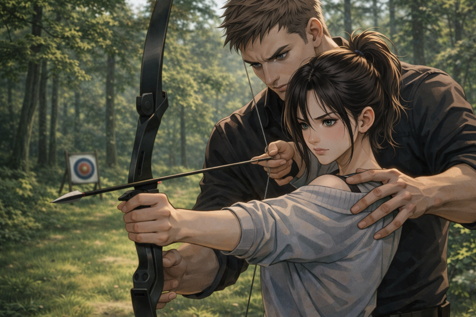 Linia wróciła, a ja oddałam kolejny perfekcyjny strzał. Kazał mi wykonać kolejne cztery strzały, nie zdejmując ręki z mojego ramienia. Wszystkie były idealne. Wziął ode mnie łuk i wystrzelił, ale nie celował do tarczy. Strzała przeleciała przez niewielkie, otwarte okienko hali sportowej. Trafił w wysoki punkt na stojącym w pewnym oddaleniu drzewie. Oddał mi broń.