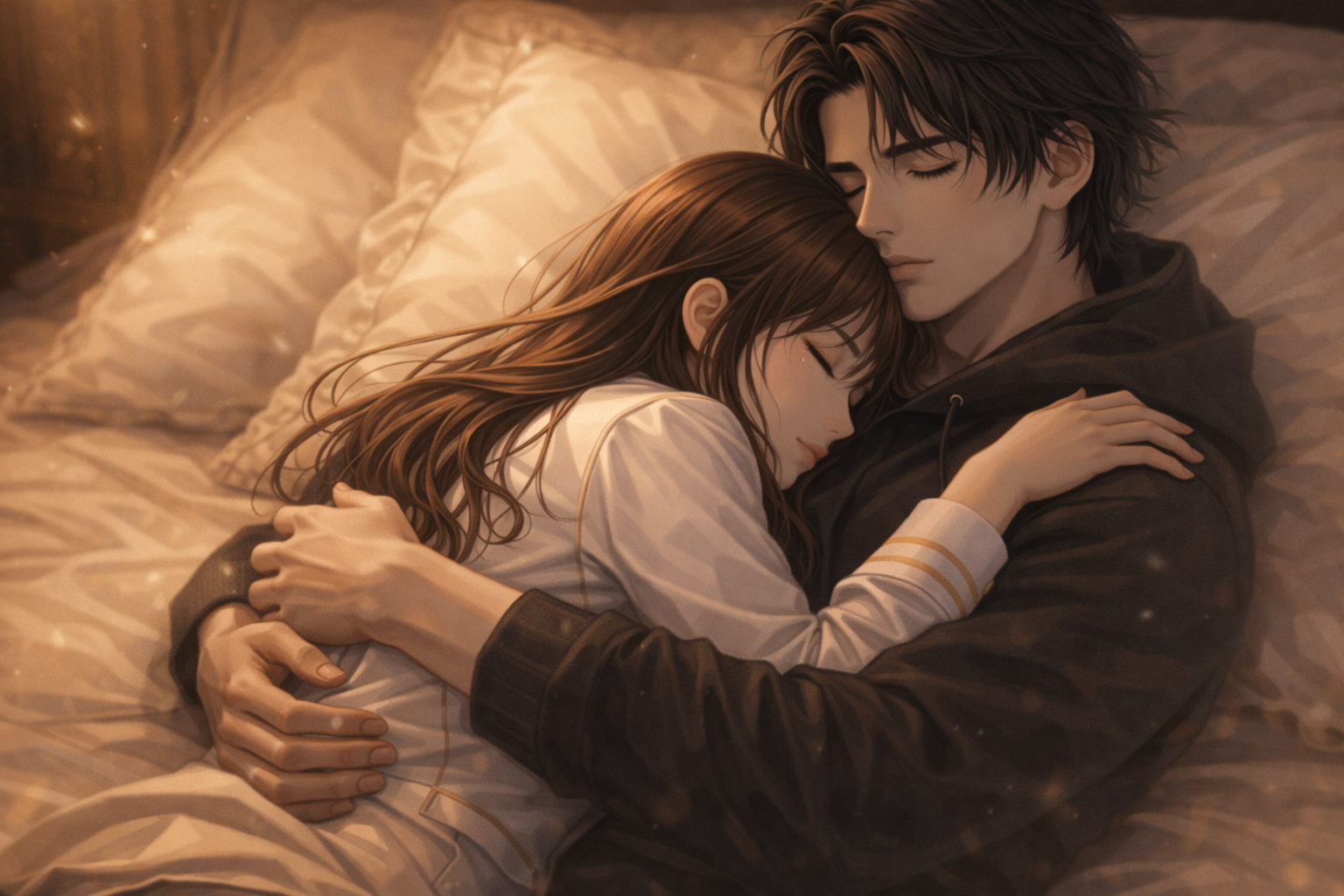 Zaczęła go całować, a on niemalże desperacko odwzajemniał jej pocałunki. Opadł na łóżko, ciągnąc ją za sobą. Usiadła mu okrakiem na kolanach, żeby móc się znaleźć jeszcze bliżej niego. Jego ręce zaczęły błądzić po jej plecach.