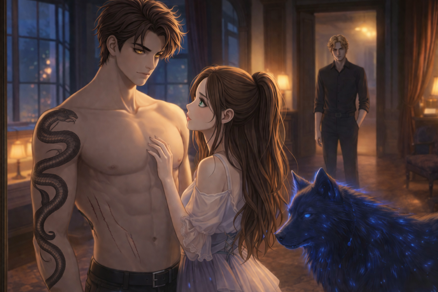 Cassian stoi bez koszuli, a na jego ciele wiją się czarne tatuaże — wąż oplatający ramię, orzeł rozkładający skrzydła na piersi, wilk na plecach. Jego moc w końcu się obudziła, ale to nie tatuaże przykuwają moją uwagę.