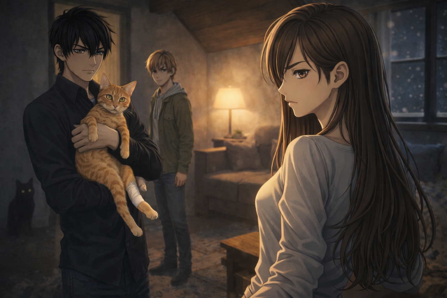 Po półgodzinnym czekaniu, pani weterynarz wyszła do nich, niosąc, w plastikowym kontenerku, śpiącego kota. Podziękowali jej grzecznie i razem wyszli z kliniki weterynaryjnej. Michał odprowadził Amy do domu, nie była pewna czy to dobry pomysł, ale zaprosiła go do środka. Czarny, potężny kocur, natychmiast zainteresował się nowymi przybyszami.