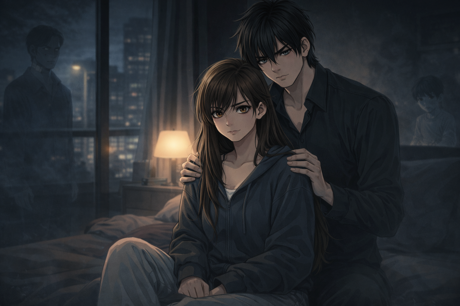 Do pokoju wszedł Gadriel. Zapalił górne światło. Usiadł na łóżku, przy wpatrującej się w pustkę dziewczynie. Strach i dezorientacja natychmiast minęły, wystarczyła sama jego obecność. Dalej jednak widziała odwiedzające jej pokój duchy. Czuła, że zrobiłaby wszystko, za własne miejsce. Przestrzeń, do której one nie miałyby dostępu.